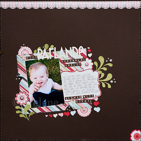 Tycker om lite finurligheter ibland, som att rubriken innehåller ordet "pärlande" och så har jag använt just pärlor och ett glittrande alfabete... Det ger lite extra att titta på när man ser sidan.
