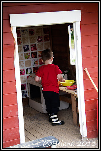 Det är sommarlov nu, det märks... Man tar sig iväg i närområdena klart mer, för att aktivera Aston som nu inte är på dagis resten av sommaren. Idag gick vi till Lekstugeparken och mötte upp Leiah och hennes mamma och syster. Det blev direkt ett fik där i lekstugan :-D